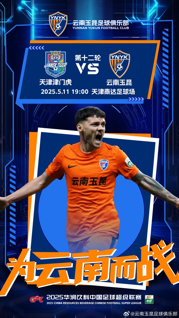 05月11日讯 北京时间19点,中超第12轮,津门虎主场迎战云南玉昆,赛前双方公布首发。