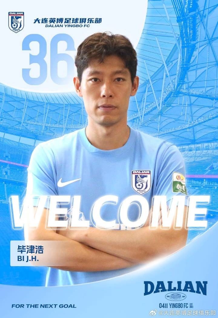欢迎毕津浩回家!期待这位大连足球的游子,在家乡球队的绿茵场上为球队攻防两端注入经验与韧性,延续其职业生涯的高光表现,与队友共同书写新的辉煌篇章!