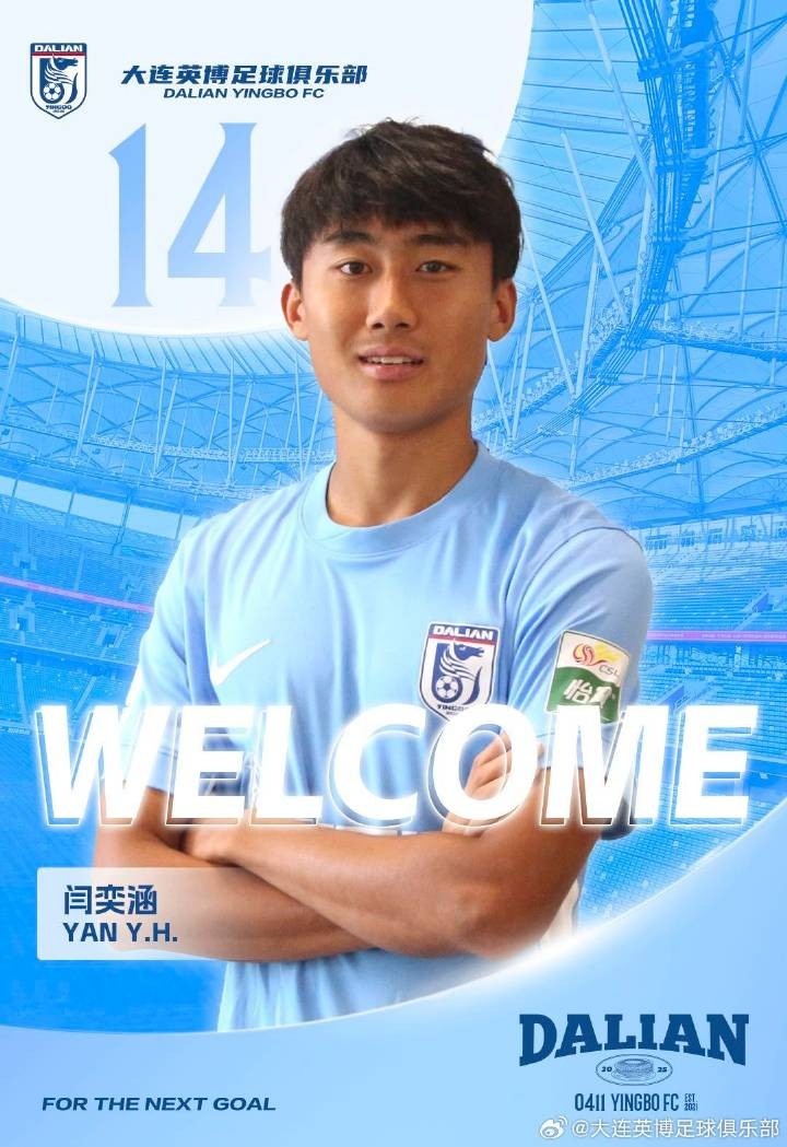 欢迎小将闫奕涵回到大连,加入大连英博大家庭!期待他尽快融入球队,用才华和拼搏精神奉献精彩表现,与俱乐部共创佳绩!