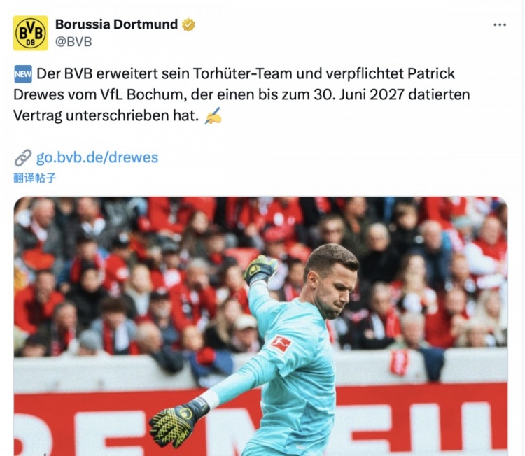 6月26日讯 当地时间本周四,多特蒙德官方宣布从波鸿签下门将帕特里克-德雷维斯。多特官方宣布,球队从上赛季降级的波鸿队中签下32岁的门将...