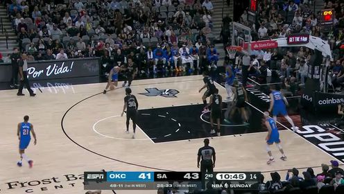 杰伦威41+6+7 亚历山大31+8 卡斯尔32+8 雷霆轻取马刺迎3连胜