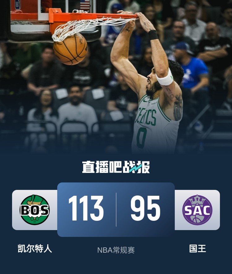 3月25日讯 NBA常规赛,国王今日迎战凯尔特人,前者近来遭遇两连败,而后者则是取得五连胜,此役蒙克、豪泽和霍福德缺战。
