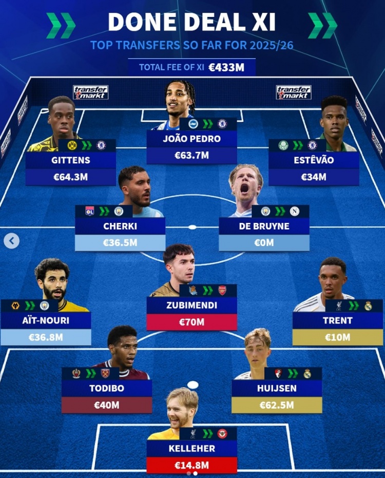 7月8日讯 夏窗刚刚重启不久,但已经完成了很多交易,《转会市场》列出了两套今夏重磅转会阵。